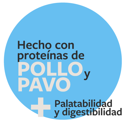 Pollo, vísceras de pavo, arroz, harina de huevo deshidratado, pulpa de remolacha, inulina, concentrado proteína de soya, plasma, cloruro de sodio, cloruro de potasio, manano-oligosacáridos, betaglucanos, extracto de yucca schidigera, harina de algas, zeolita, carbonato de calcio, Minerales Orgánicos (Hierro, Zinc, Selenio, Cobre, Manganeso), Vitamina A Retinol, Vitamina B1 Tiamina, Vitamina B2 Riboflavina, Vitamina B3 Niacinamida, Vitamina B5 Ácido Pantoténico, Vitamina B6 Piridoxina, Vitamina B9 Ácido Fólico, Vitamina B12 Cianocobalamina, Vitamina D3 Colecalciferol, Vitamina E Tocoferol Acetato, Vitamina H Biotina, Vitamina C ácido ascórbico, Tocoferoles y Aceite de Romero.