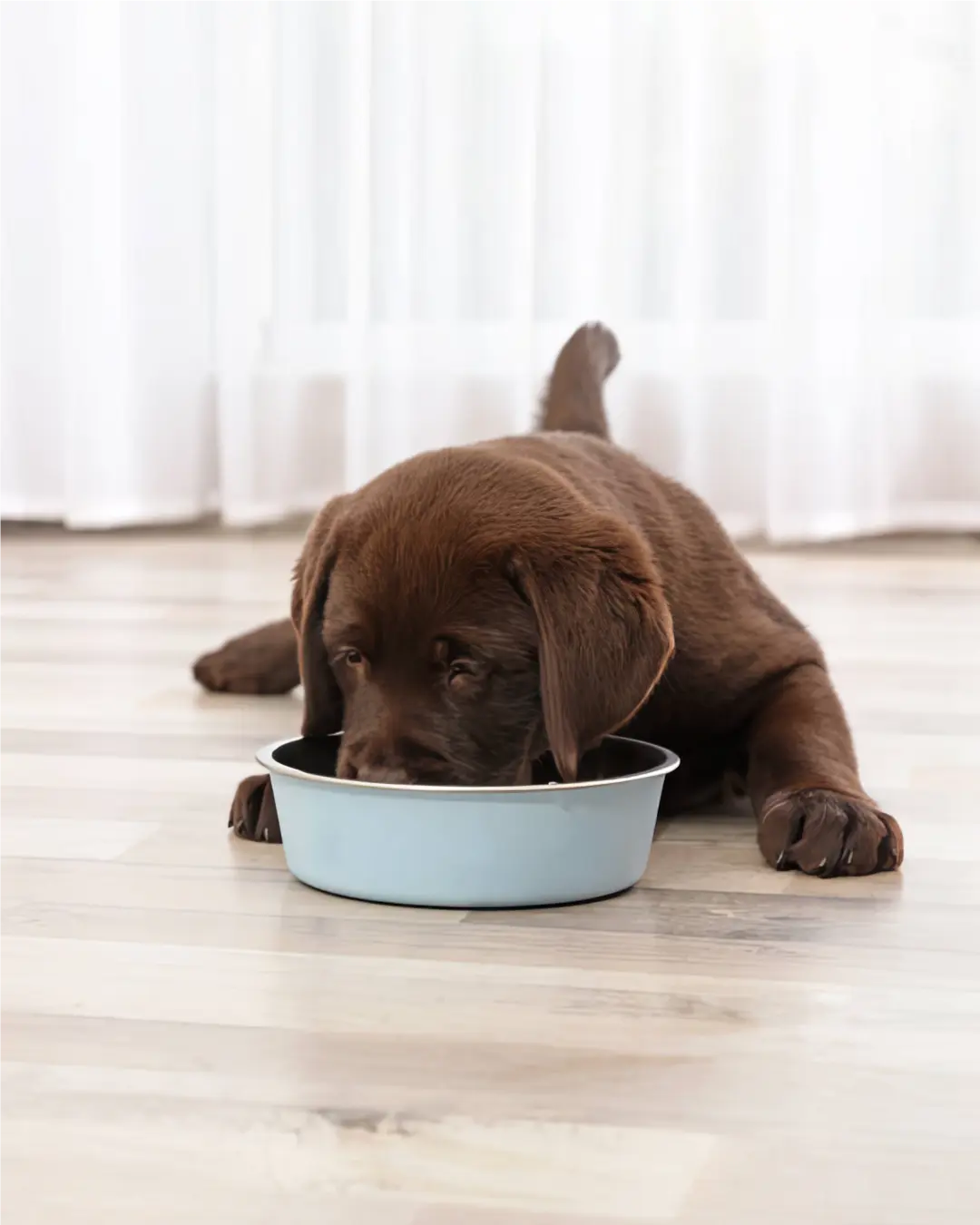❌ Dejar que el cachorro coma solo cuando quiera.